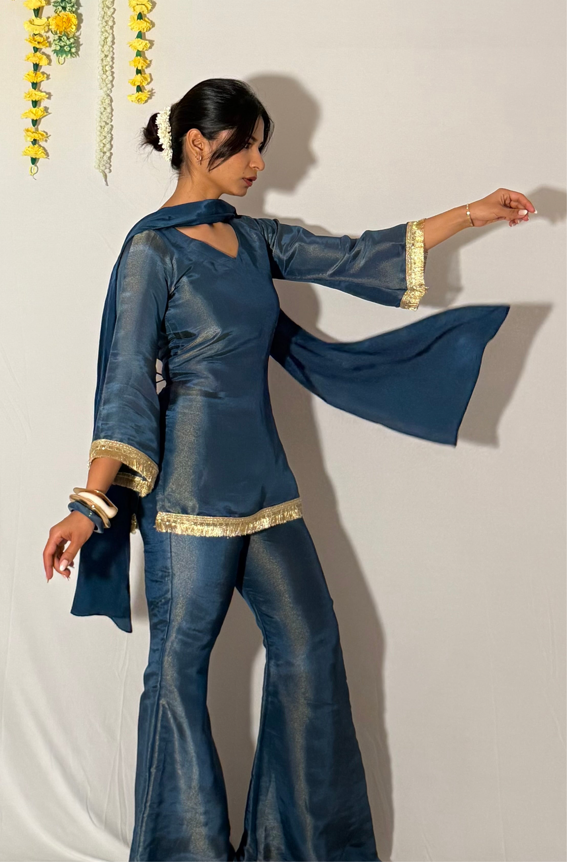 Sleek, shiny, and oh-so-stylish—these shimmer bell-bottom pants are the ultimate festive bottoms. Designed with a flattering high-rise fit and a dramatic flare, they bring retro glam with a modern festive twist. Pair them with kurtis, crop tops, or festive jackets—these pants are your statement separate for every occasion.