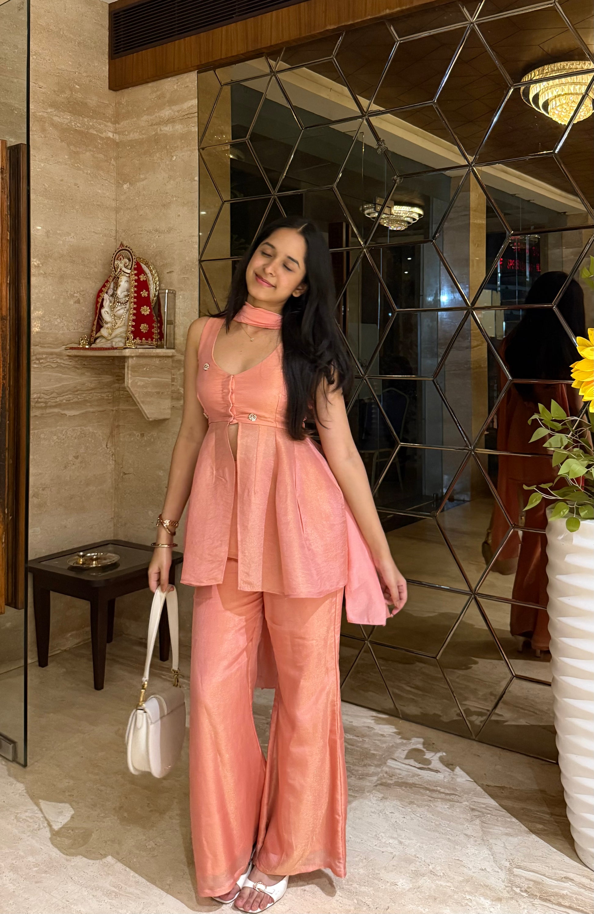 Peach phuljhari top and dupatta