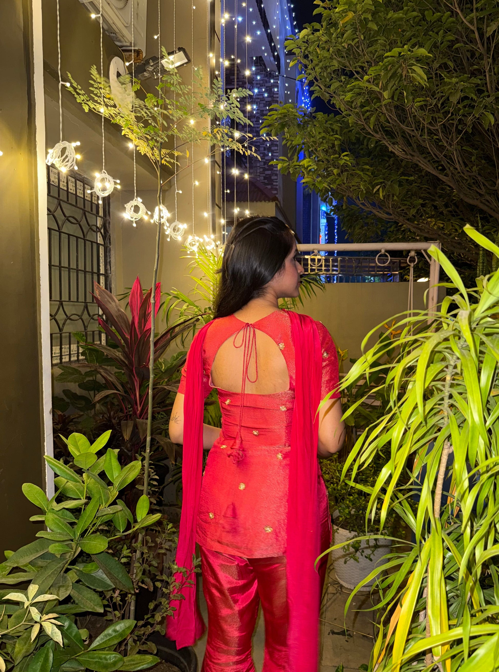 A total Poo moment with a Y2K twist 💋—this shimmer straight-fit kurti features a bold square neckline and dainty floral embellishments, making it your go-to for festive glam and wedding drama.
